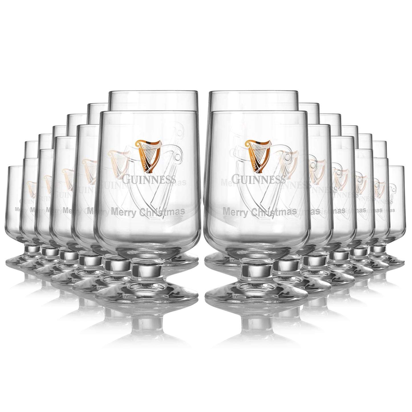 Whether you're hosting a formal dinner party or a casual get-together, these glasses are sure to impress with their elegant design and timeless appeal. Each glass features the same long stem and embossed Guinness logo, making it easy to create a uniform table setting or stock up your home bar, ready for guests!